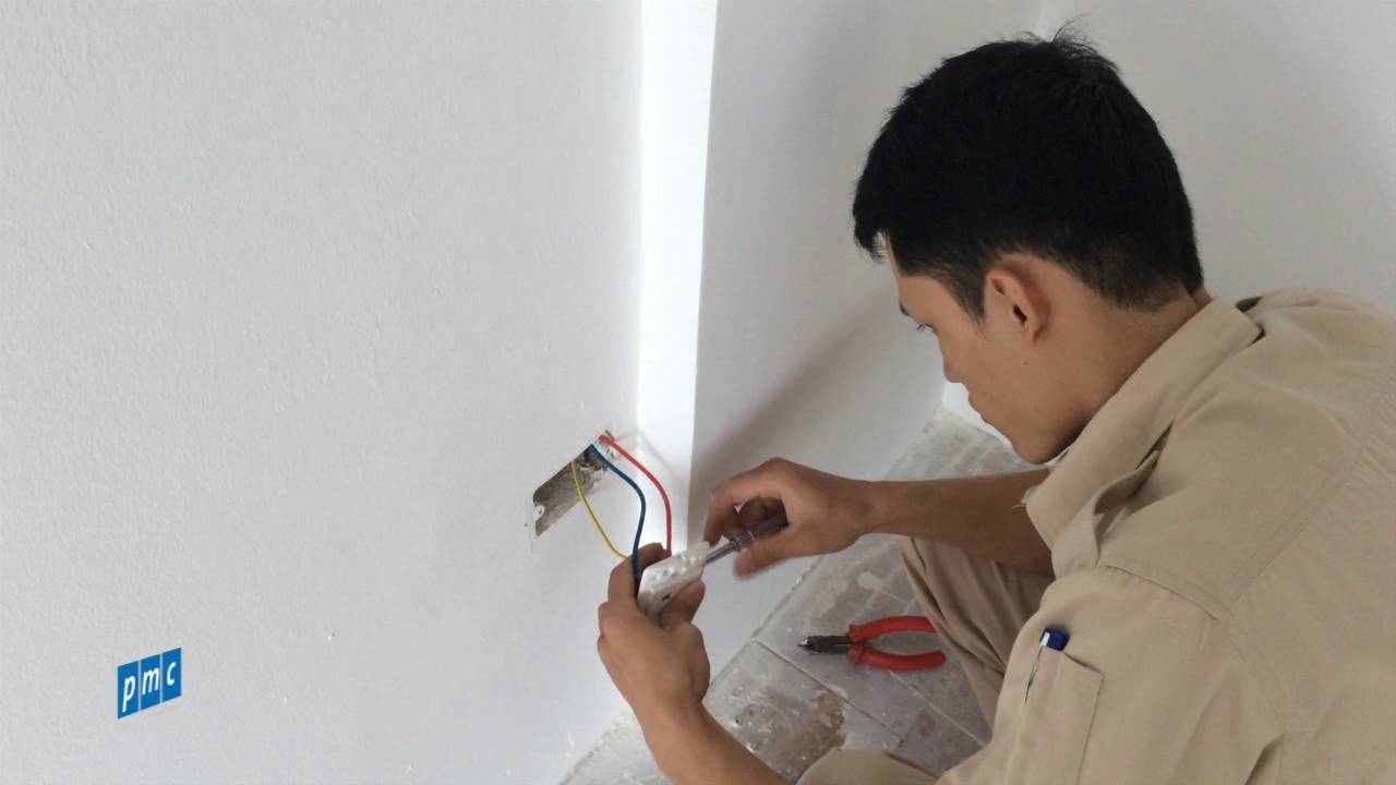 Sau đó, nối dây đúng vào các chân cắm. Dùng tuốc nơ vít để vít chạy lại dây điện vào chân trên ổ cắm mới. Và tiến hành lắp lại ổ cắm. Cuối cùng kéo cầu dao lên dùng bút thử điện để kiểm tra.